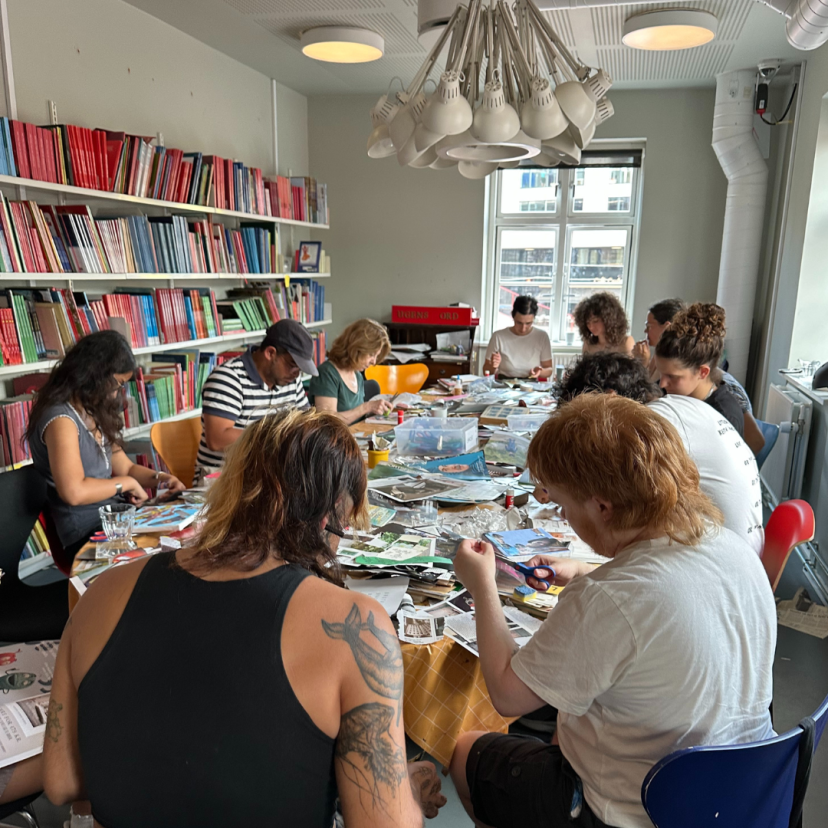 Collage workshoppen mødes torsdage på biblioteket i rummet ved siden af elevatoren på 1. sal fra klokken 12-14